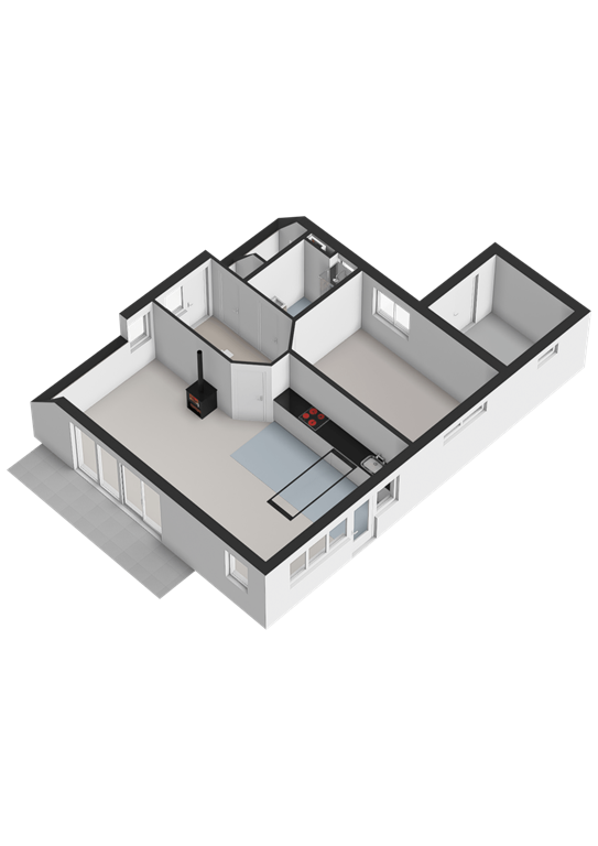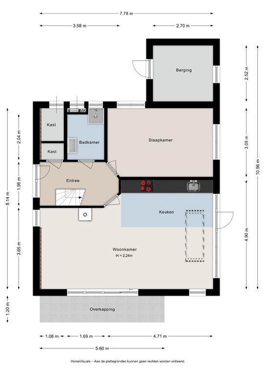 Bij binnenkomst komt u in de hal met toilet, een lichte badkamer met ligbad en douche, een ruime slaapkamer en trapkast. De woonkamer heeft een haard en keuken met elektrische kookplaat, afzuigkap, koelkast, combi-oven en vaatwasser. Er zijn schuifbare tuindeuren en een trap naar de eerste verdieping. De meterkast en berging zijn via de buitenzijde bereikbaar.