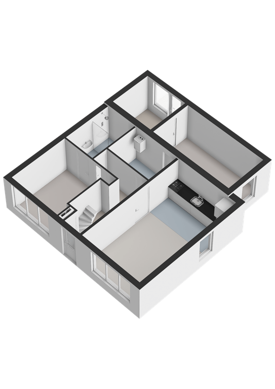 Binnenkomst via de entree met meterkast, met toegang tot de woonkamer, keuken, slaapkamer, bijkeuken, badkamer met inloopdouche, toilet en wastafel. De keuken is voorzien van een combimagnetron, gaskookplaat, afzuigkap en vaatwasser. Via de bijkeuken, waar ook de cv-ketel is geplaatst, loopt u door naar de slaapkamer en vervolgens naar de hal met een achteruitgang voor alleen noodsituaties.
