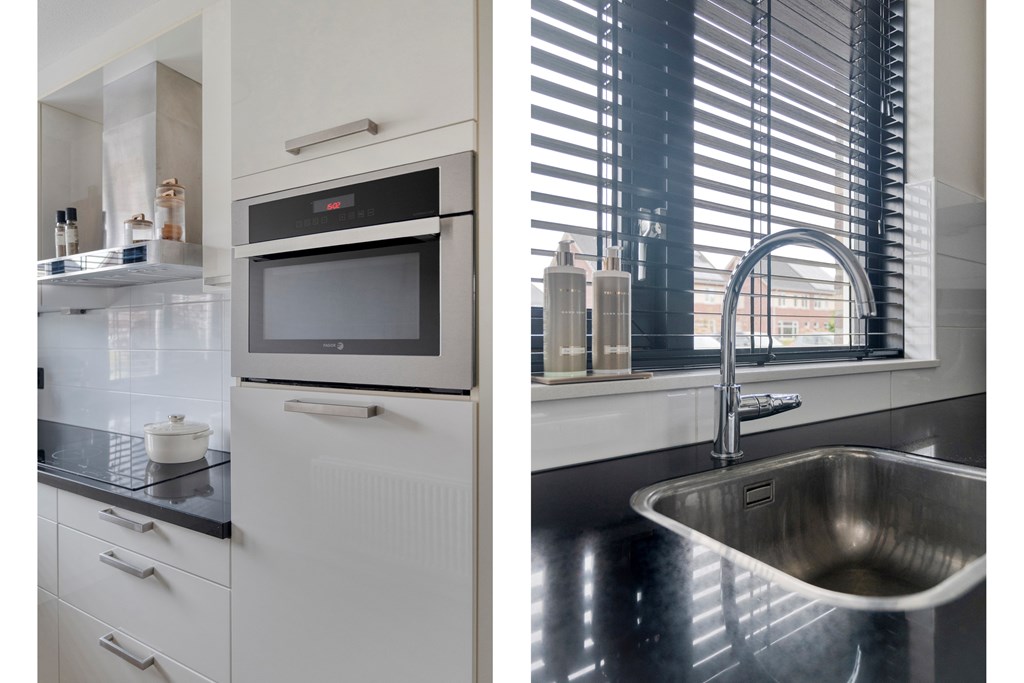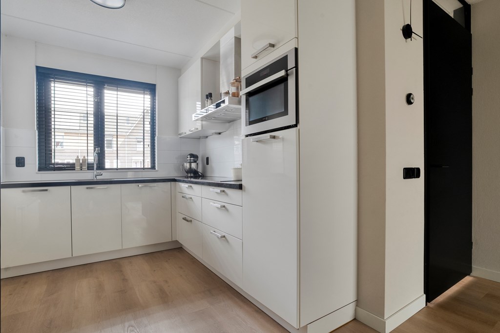 Je stapt binnen in een verzorgde hal met toilet en meterkast. Vanuit hier loop je door naar de tuingerichte woonkamer met veel lichtinval en een schuifdeur naar de achtertuin op het zuiden. De open keuken aan de voorzijde is voorzien van inbouwapparatuur zoals een inductiekookplaat met afzuigkap, vaatwasser (2025), combi-oven en koelkast. In 2022 is de begane grond is volledig nieuw gesausd, is de waterdamphaard geplaatst met tv-meubel en afgewerkt met een nieuwe pvc-vloer.