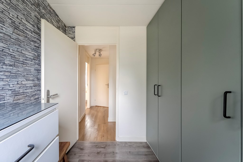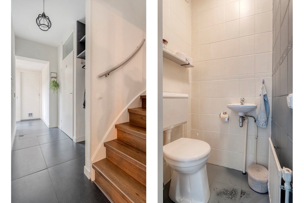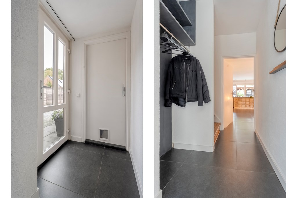 In dit gezellige en verkeersluwe straatje tref je deze leuke woning aan! Je parkeert de auto gemakkelijk op je eigen oprit. Via de entree kom je in de hal met links de berging (voorzien van cv-installatie), de trapopgang, meterkast en het toilet. Vanuit de hal stap je de uitgebouwde woonkamer in, waar de grote kunststof schuifpui zorgt voor veel lichtinval en een fijne verbinding met de achtertuin. De keuken bevindt zich aan de voorzijde en is uitgerust met een gaskookplaat, vaatwasser, combimagnetron en koelkast – helemaal compleet dus! Daarnaast is er vloerverwarming aanwezig in de woonkamer, keuken en een deel van de hal, wat zorgt voor extra comfort.