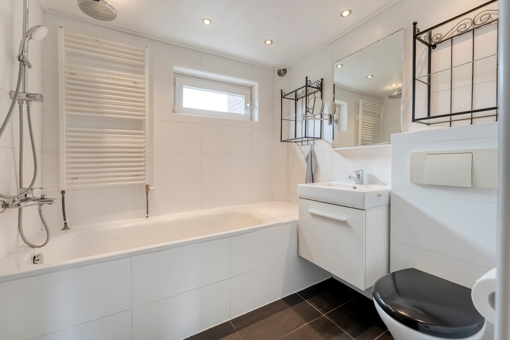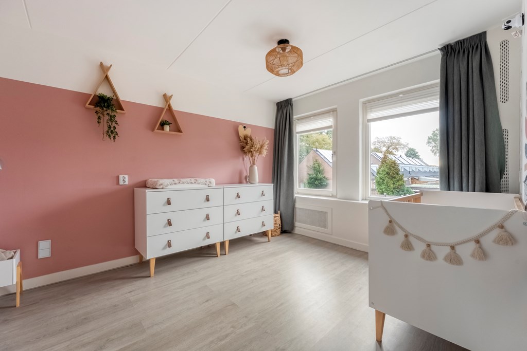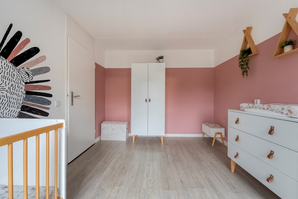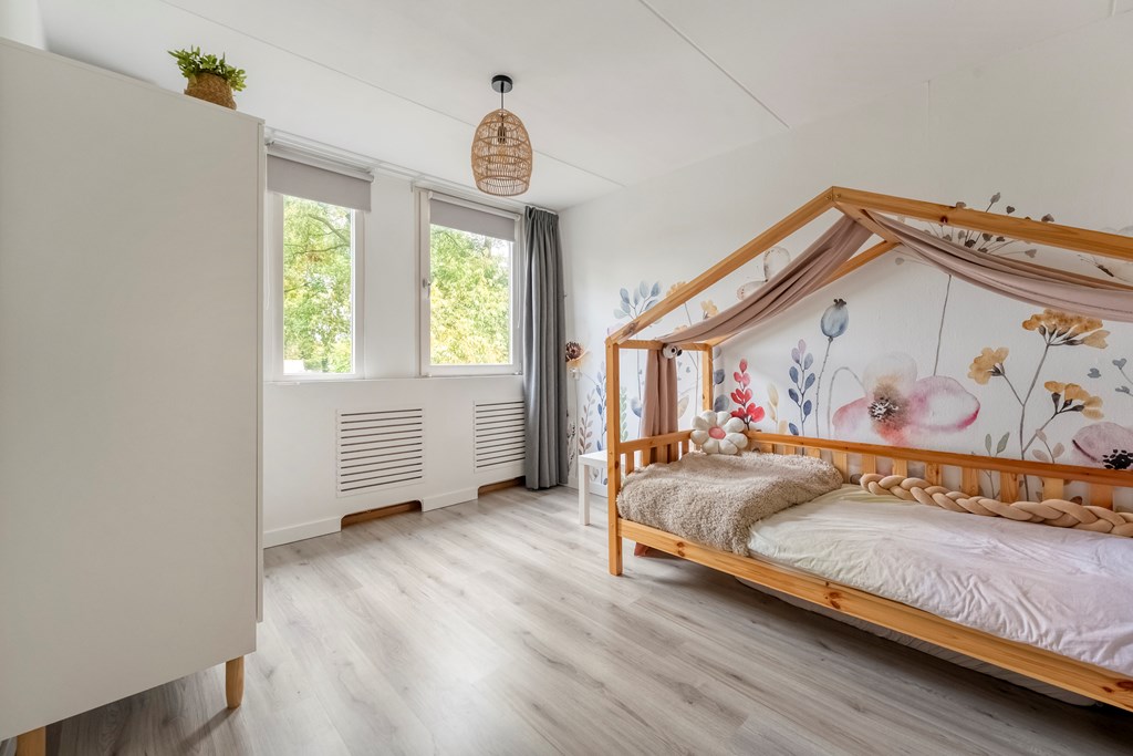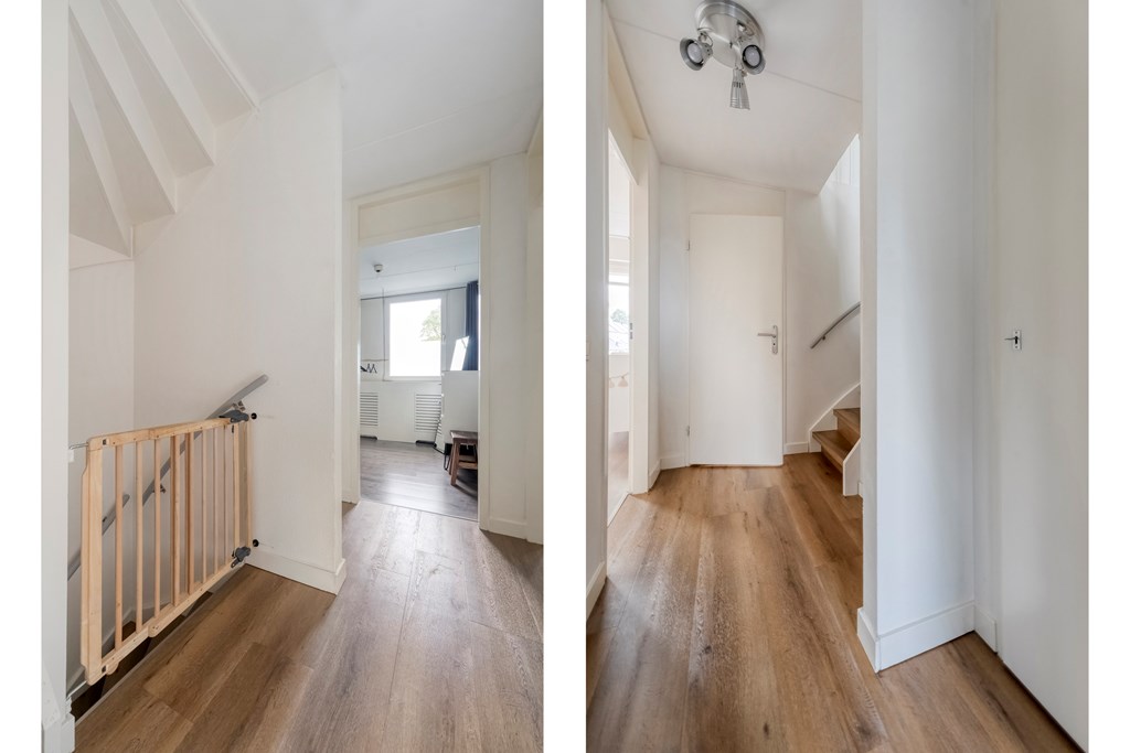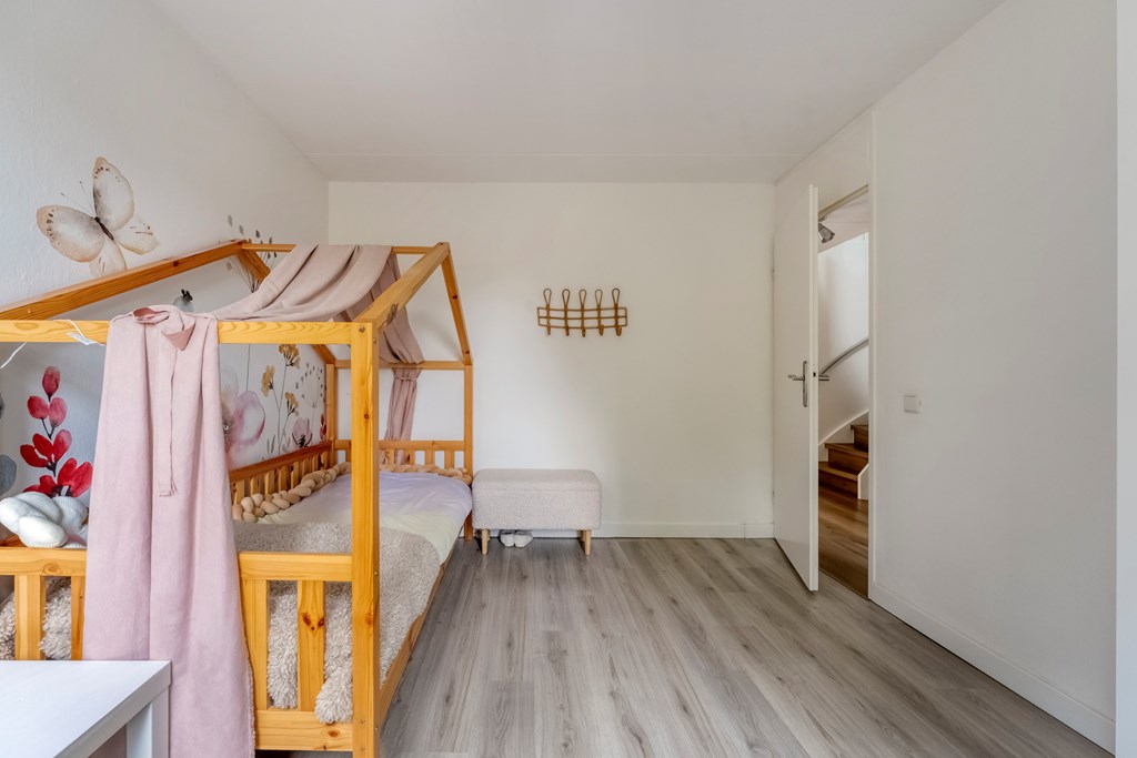 De zolder is bereikbaar via een vaste trap. Deze verdieping is keurig afgewerkt en biedt een ruime vierde slaapkamer. Achter de knieschotten is bovendien extra bergruimte, altijd handig voor de spullen die je niet dagelijks nodig hebt.