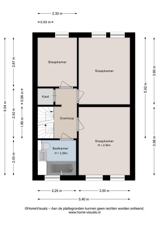 Via de overloop zijn er drie leuke slaapkamers en de badkamer bereikbaar. De badkamer is voorzien van een ligbad, wastafel en toilet.