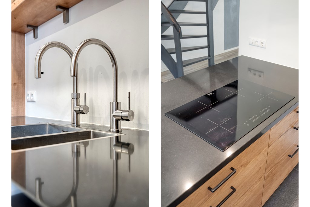 Aan de voorzijde van de woning bevindt zich een praktische carport. Via de hal met toilet en meterkast stap je de lichte woonkamer aan de straatzijde binnen. Aansluitend ligt de moderne keuken, met openslaande deuren naar de zonnige achtertuin op het zuidoosten – een heerlijke plek om te genieten van het buitenleven. De keuken is in 2022 nieuw geplaatst en is compleet uitgerust met een inductiekookplaat, koelkast, Quooker, vaatwasser en combi-oven. Vanuit de keuken bereik je de bijkeuken en de berging. Ook via de bijkeuken heb je toegang tot de achtertuin. De begane grond is volledig voorzien van vloerverwarming.