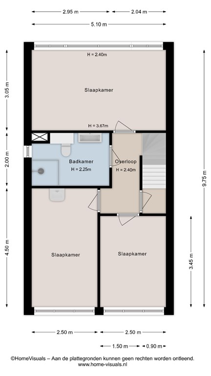 Via de overloop zijn er drie leuke slaapkamers bereikbaar. De vernieuwde badkamer (2021) is voorzien van een inloopdouche, wastafelmeubel, toilet en vloerverwarming. De grootste slaapkamer strekt zich uit over de volledige breedte van de woning.