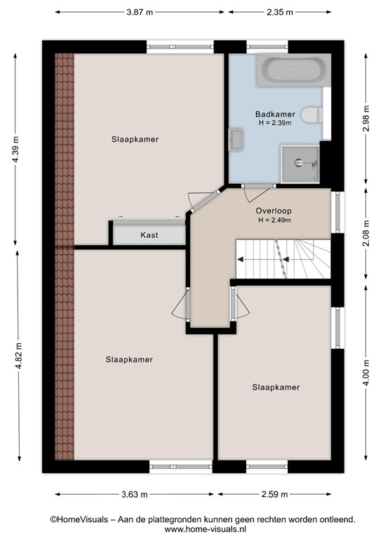 Via een vaste trap is de zolderverdieping bereikbaar, met twee extra slaapkamers.