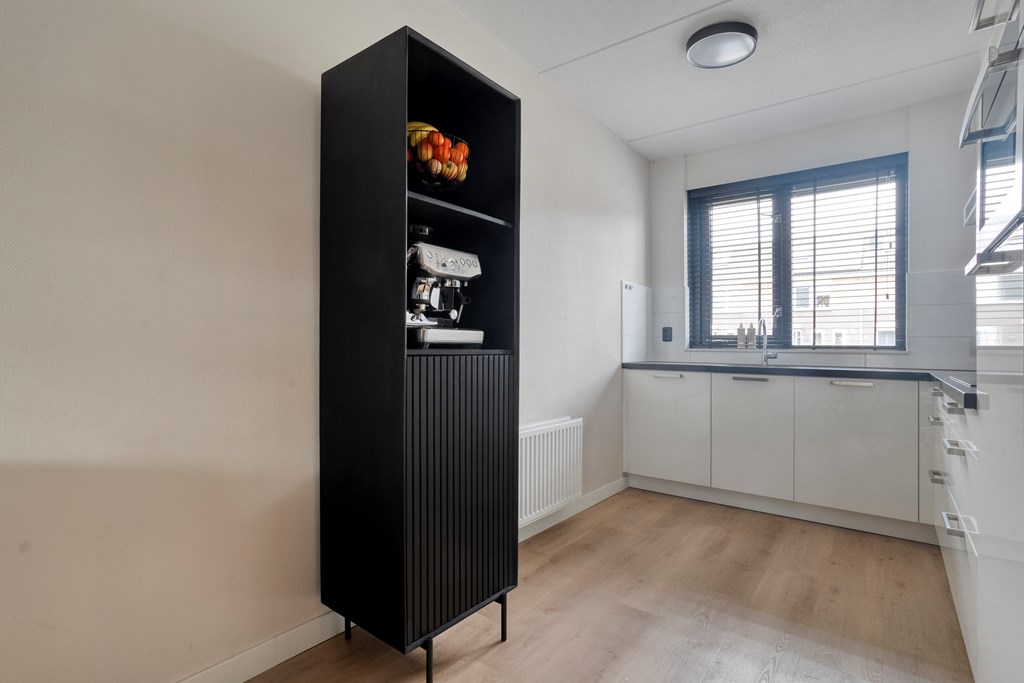 Je stapt binnen in een verzorgde hal met toilet en meterkast. Vanuit hier loop je door naar de tuingerichte woonkamer met veel lichtinval en een schuifdeur naar de achtertuin op het zuiden. De open keuken aan de voorzijde is voorzien van inbouwapparatuur zoals een inductiekookplaat met afzuigkap, vaatwasser (2025), combi-oven en koelkast. In 2022 is de begane grond is volledig nieuw gesausd, is de waterdamphaard geplaatst met tv-meubel en afgewerkt met een nieuwe pvc-vloer.