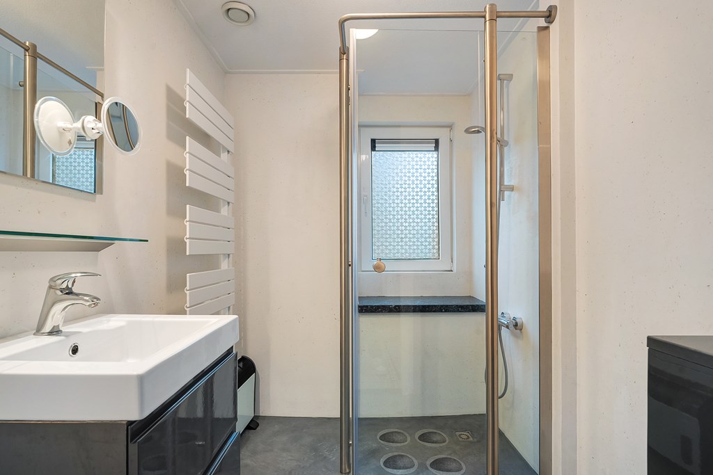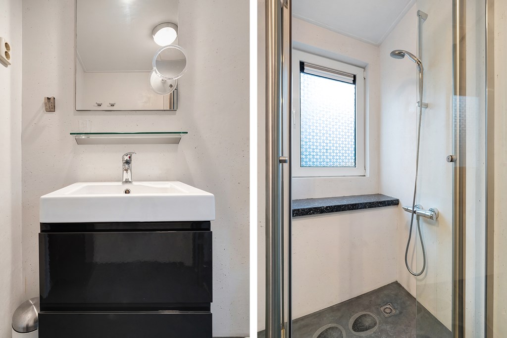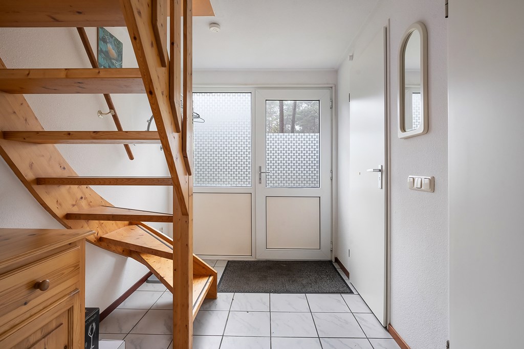 Bij binnenkomst komt u in de hal met toilet, een lichte badkamer met ligbad en douche, een ruime slaapkamer en trapkast. De woonkamer heeft een haard en keuken met elektrische kookplaat, afzuigkap, koelkast, combi-oven en vaatwasser. Er zijn schuifbare tuindeuren en een trap naar de eerste verdieping. De meterkast en berging zijn via de buitenzijde bereikbaar.