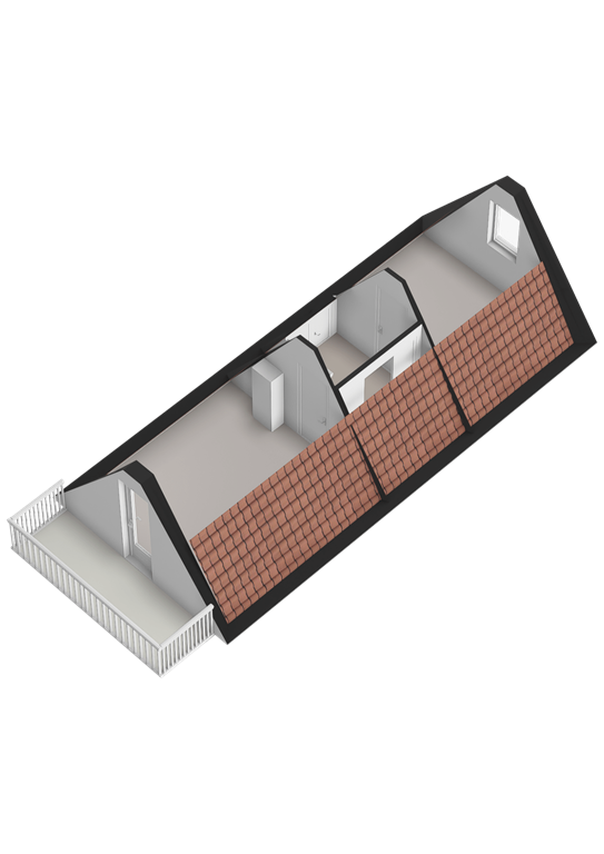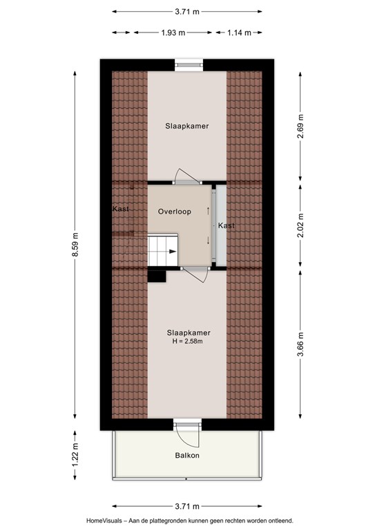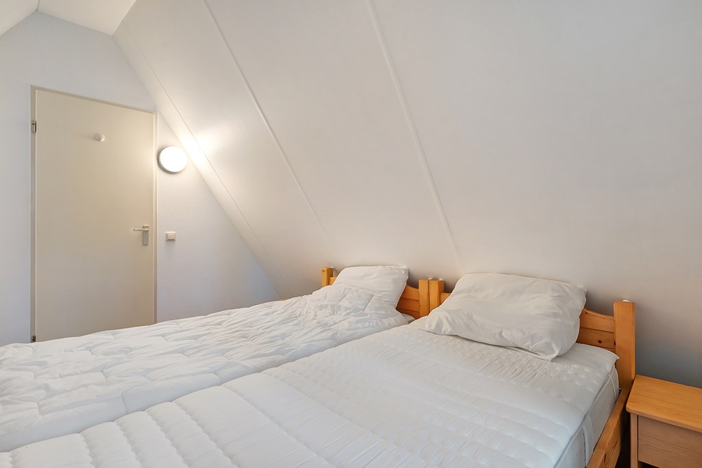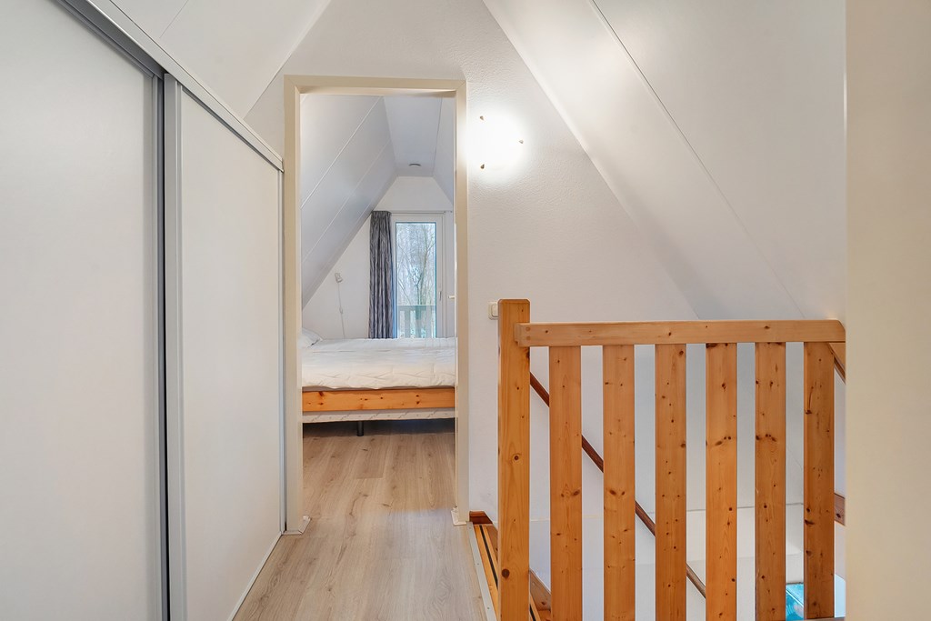 Overloop met vaste kasten en twee slaapkamers waarvan één met balkon.