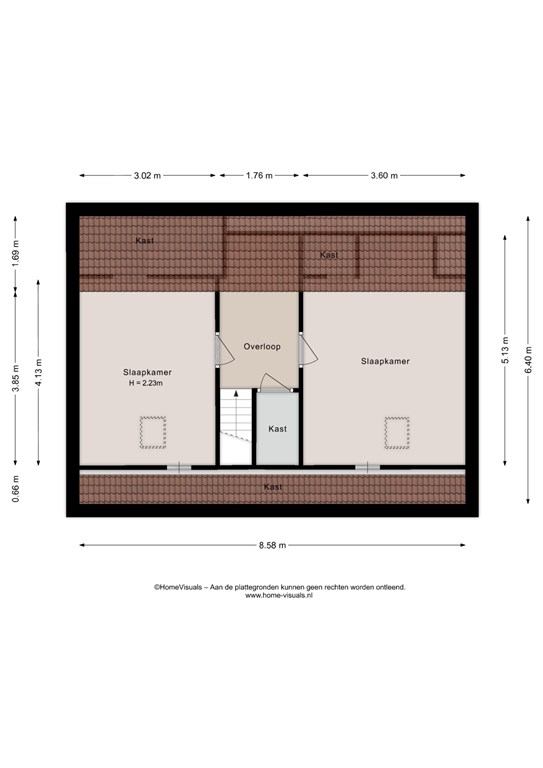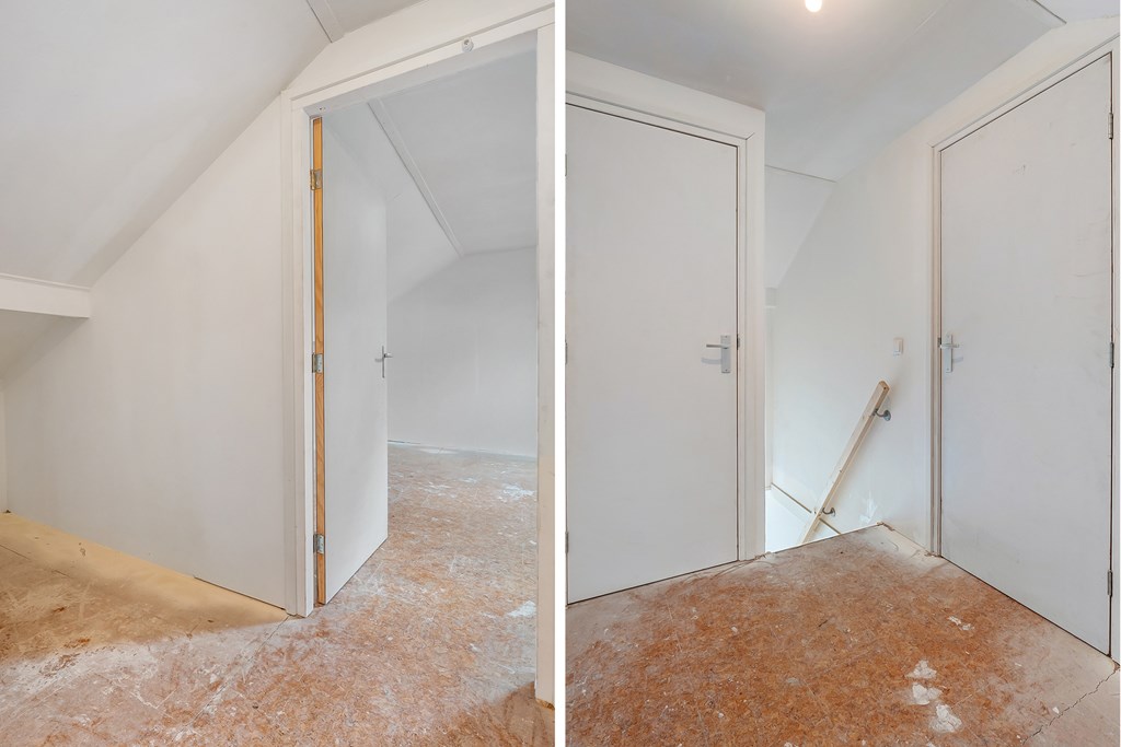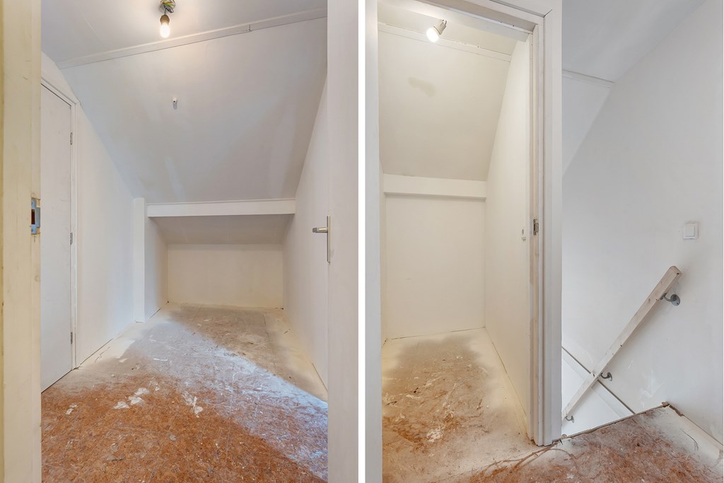 Via een vaste trap in de hal bereik je de overloop, die toegang biedt tot twee ruime slaapkamers. Op de overloop bevindt zich nog een vaste inloopkast.
