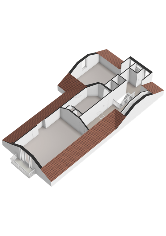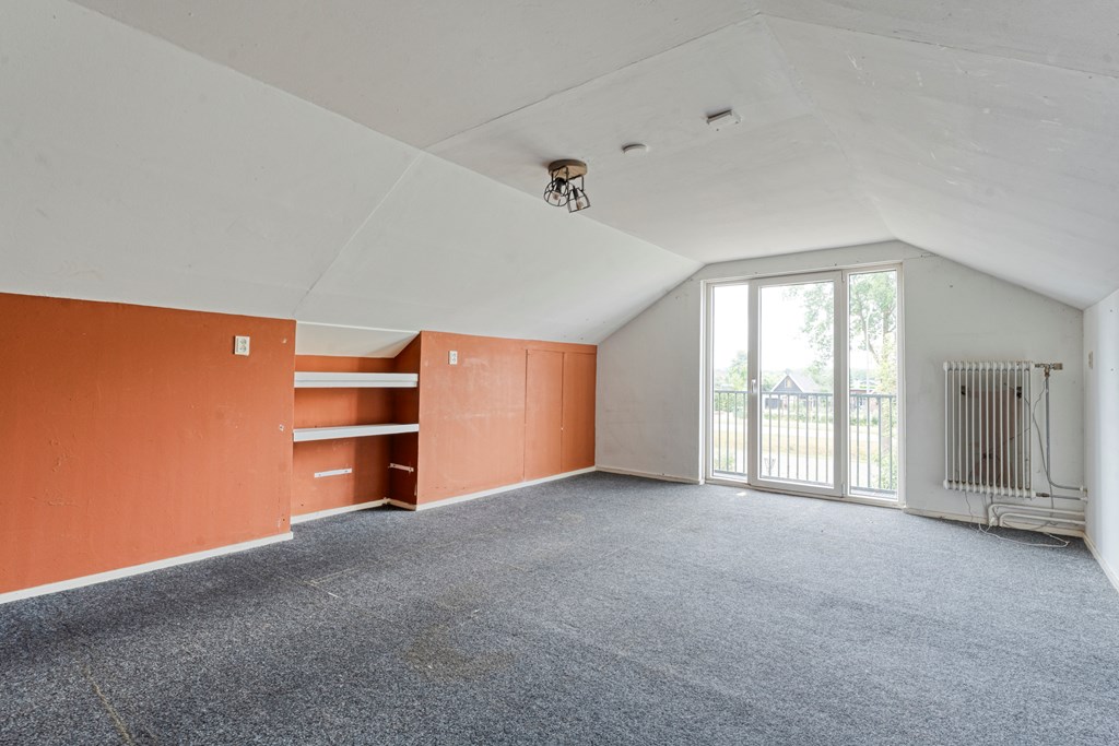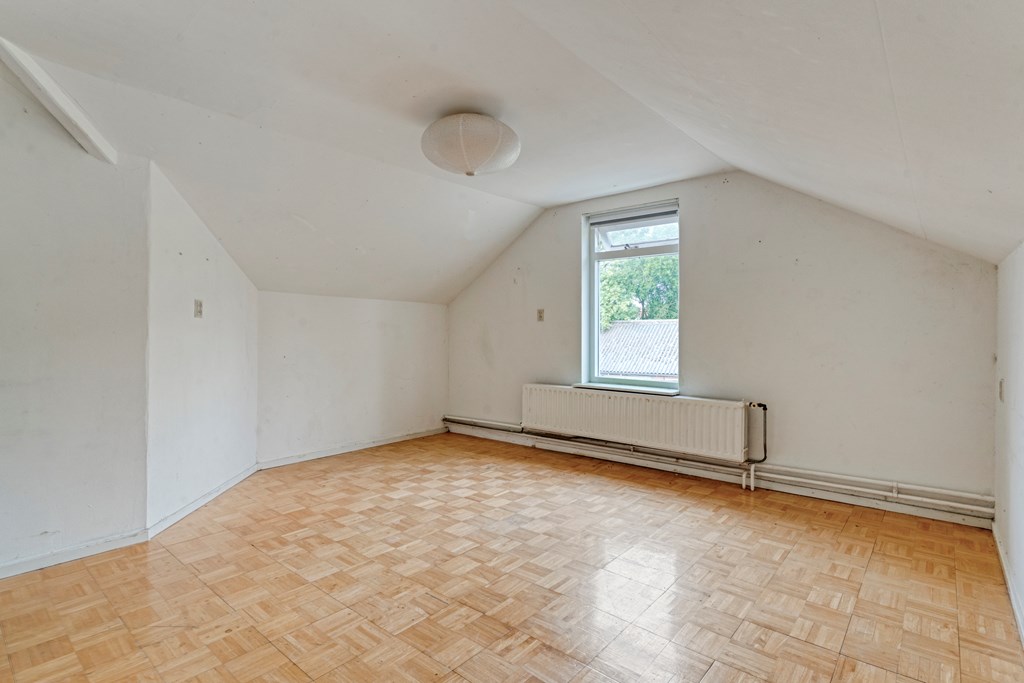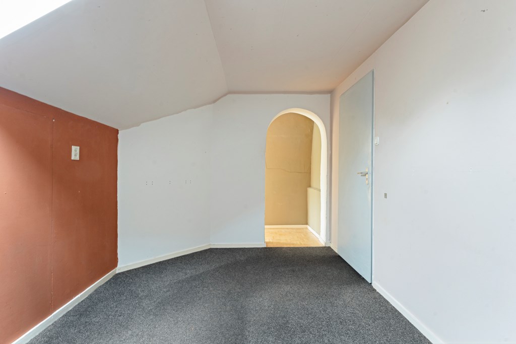 Ruime overloop met toegang tot maar liefst drie slaapkamers, waarvan de grootste beschikt over een balkon. Alle kamers zijn voorzien van vaste kasten. Verder is er een apart toilet en extra bergruimte onder het schuine dak.