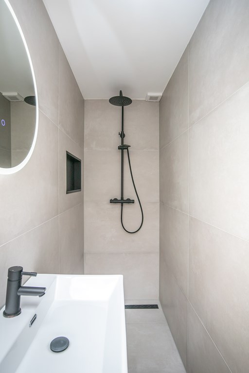 Via de overloop zijn vier slaapkamers te bereiken. De badkamer (2021) is volledig betegeld en voorzien van een douche en wastafel.