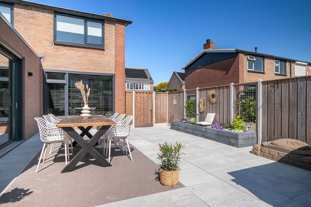 Verbeteringen: - 2021: uitbouw met bijkeuken, nieuwe keuken met kookeiland, nieuw toilet, vernieuwde badkamer, elektra + meterkast, stucwerk, schilderwerk, pvc vloer beneden en laminaat boven, kunststof kozijnen met HR++ beglazing, sierhaard in woonkamer. - 2022: achtertuin vernieuwd. - 2023: bijkeuken gerenoveerd. Kenmerken Woonoppervlakte: ca. 110 m² Perceeloppervlakte: 231 m² Inhoud: ca. 389 m³ Energielabel: C