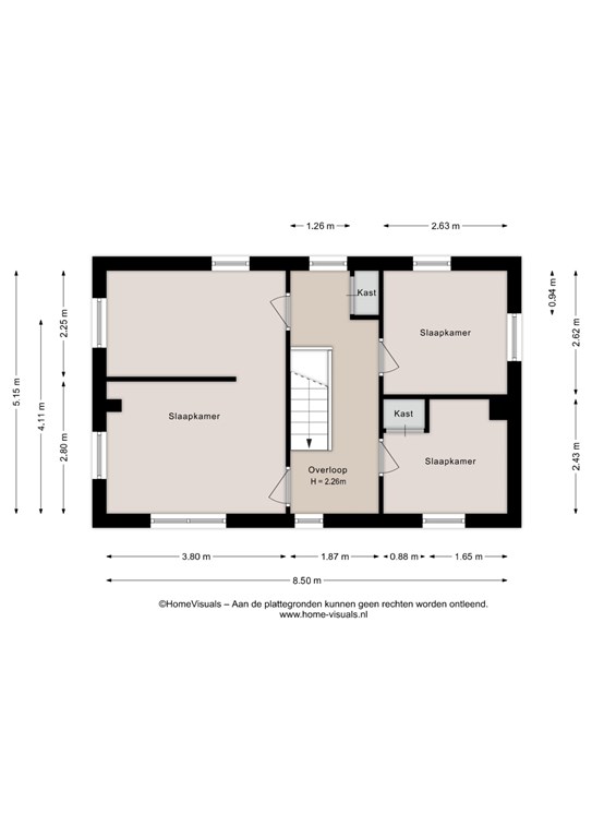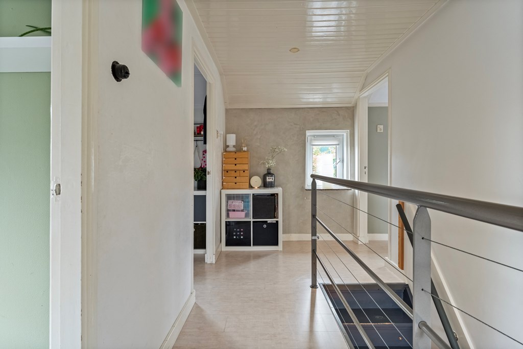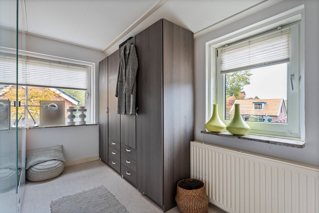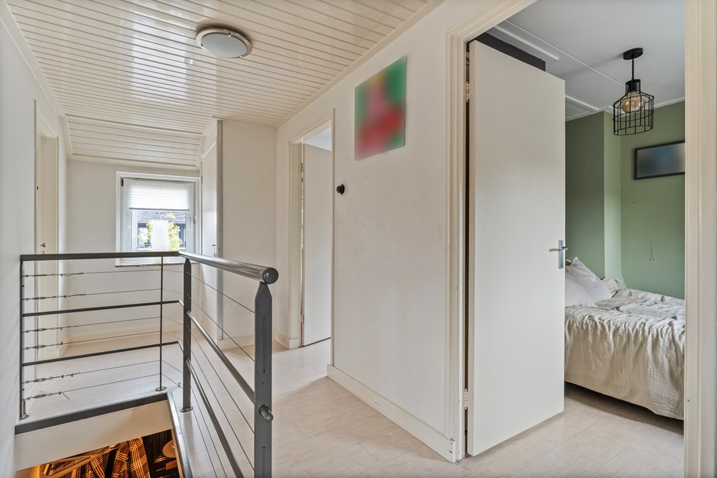 Via de overloop met een vaste kast zijn er drie slaapkamers bereikbaar. De hoofdslaapkamer is eventueel op te splitsen tot een vierde slaapkamer.