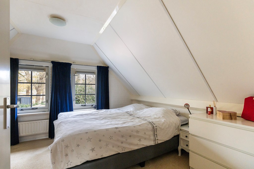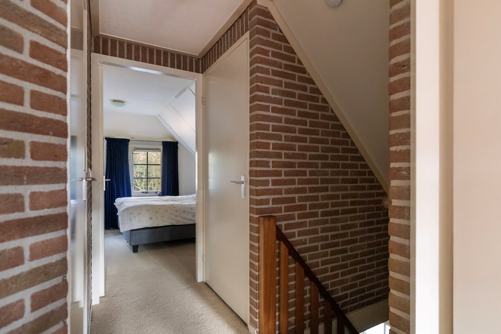 Overloop met toegang tot drie slaapkamers, een berging en de badkamer met bubbelbad, douche, wastafel en toilet. Beide slaapkamers aan de voorzijde en de slaapkamer aan de achterzijde zijn voorzien van dakkapellen.