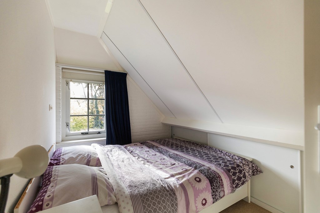 Overloop met toegang tot drie slaapkamers, een berging en de badkamer met bubbelbad, douche, wastafel en toilet. Beide slaapkamers aan de voorzijde en de slaapkamer aan de achterzijde zijn voorzien van dakkapellen.