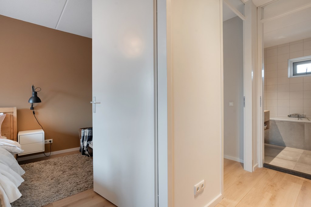 Op de eerste verdieping bevinden zich drie ruime slaapkamers en een nette badkamer met inloopdouche, ligbad, wastafelmeubel en een tweede toilet. De badkamer is bovendien voorzien van elektrische vloerverwarming. In de slaapkamers en overloop ligt een nette laminaatvloer.