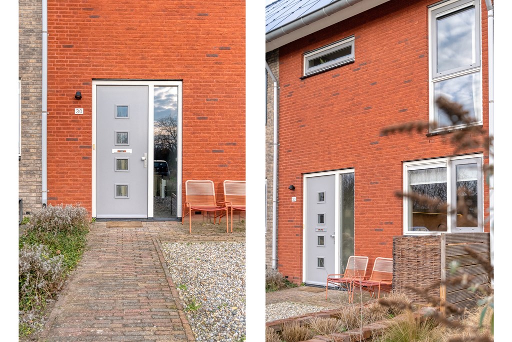 Via de voortuin bereik je de voordeur en kom je binnen in de hal met modern toilet, meterkast en trapopgang. Vanuit de hal loop je zo de ruime, tuingerichte woonkamer in. Deze is tijdens de bouw 1,20 meter uitgebouwd en voorzien van veel glas met openslaande tuindeuren naar de achtertuin, wat zorgt voor veel licht en een prettige verbinding met buiten. De keuken bevindt zich aan de voorzijde van de woning, is uitgevoerd in een moderne opstelling en beschikt uiteraard over alle kwaliteit inbouwapparatuur; zoals een vaatwasser (2026), Quooker, koelkast, oven en inductiekookplaat. Op de volledige begane grond ligt een vloer van marmoleum.