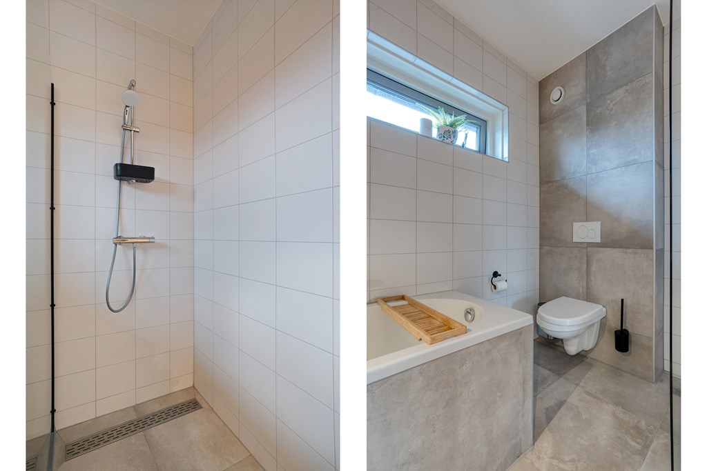Op de eerste verdieping bevinden zich drie ruime slaapkamers en een nette badkamer met inloopdouche, ligbad, wastafelmeubel en een tweede toilet. De badkamer is bovendien voorzien van elektrische vloerverwarming. In de slaapkamers en overloop ligt een nette laminaatvloer.