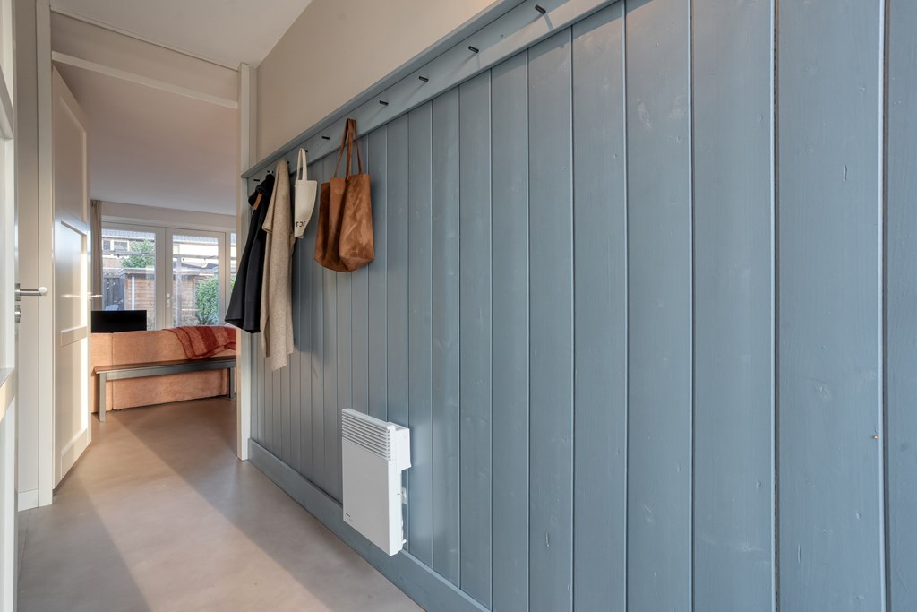 Via de voortuin bereik je de voordeur en kom je binnen in de hal met modern toilet, meterkast en trapopgang. Vanuit de hal loop je zo de ruime, tuingerichte woonkamer in. Deze is tijdens de bouw 1,20 meter uitgebouwd en voorzien van veel glas met openslaande tuindeuren naar de achtertuin, wat zorgt voor veel licht en een prettige verbinding met buiten. De keuken bevindt zich aan de voorzijde van de woning, is uitgevoerd in een moderne opstelling en beschikt uiteraard over alle kwaliteit inbouwapparatuur; zoals een vaatwasser (2026), Quooker, koelkast, oven en inductiekookplaat. Op de volledige begane grond ligt een vloer van marmoleum.