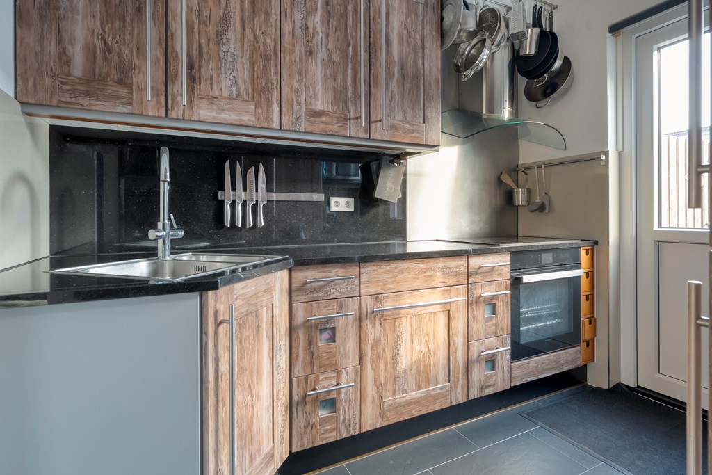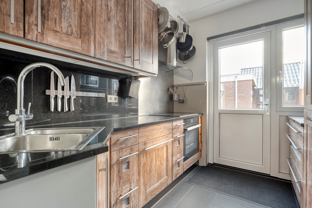 Entree met garderoberuimte en toegang tot het toilet, de trapopgang en de leefruimte. Het toilet is voorzien van een fonteintje. De woonkamer met zithoek staat in open verbinding met de eetkamer. De open keuken beschikt over een oven, inductie kookplaat, afzuigkap en koelkast. Aansluitend bevindt zich een provisiekast.