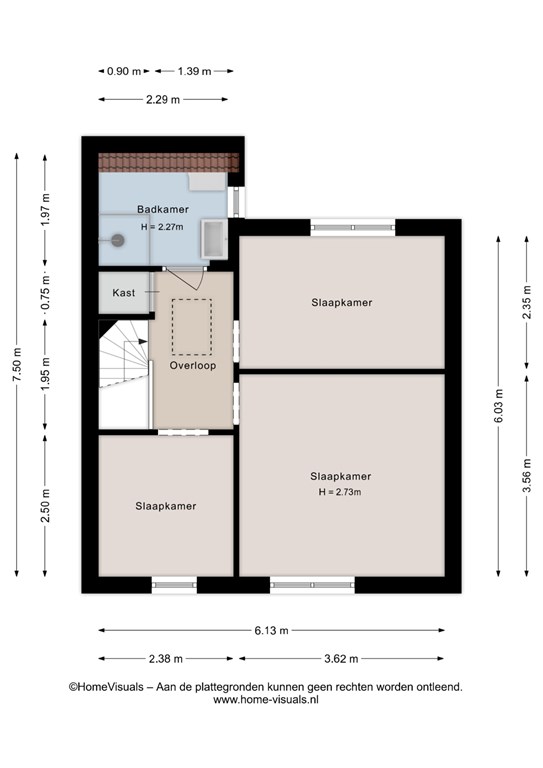 Via een vlizotrap is de zolder bereikbaar. Hier bevindt zich ook de cv-installatie.