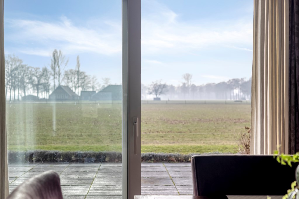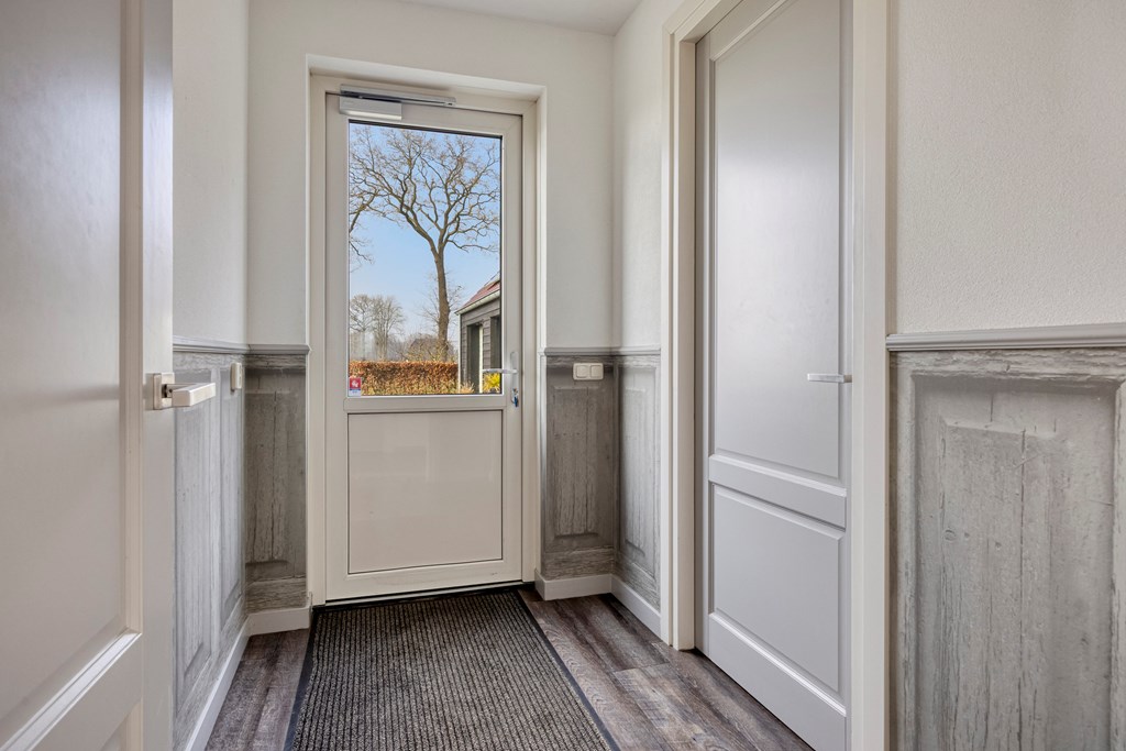 Entree/meterkast/ wandtoilet met fontein/ kantoor cq. bijkamer/ achteringang/ bijkeuken voorzien van wasmachineaansluiting en een extra aanrechtblok met spoelbak/ halfopen keuken voorzien van anderhalf spoelbak, 5-pits inductiekookplaat, vlakschermafzuigkap, combimagnetron, koelkast, vriezer en vaatwasmachine/ woonkamer voor-zien van gashaard, schuifpui naar terras/ slaapkamer met schuifpui en inloopkast/ badkamer voorzien van douchehoek, vaste wastafel, wandtoilet met designradiator.