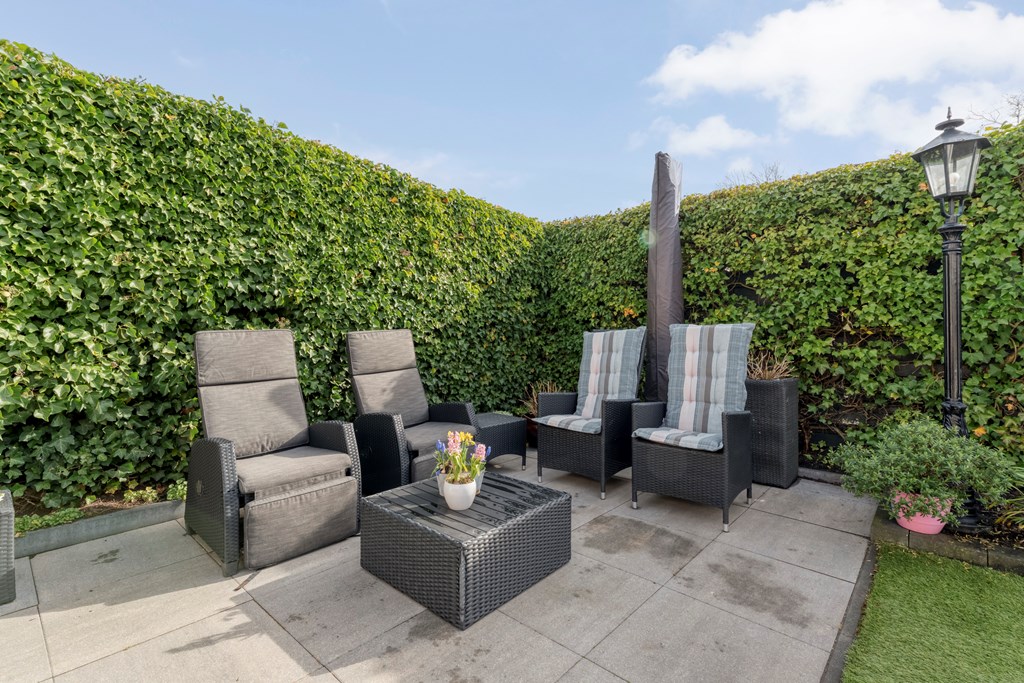 Via de carport kom je binnen in de lichte hal met meterkast, toiletruimte en trapopgang. Aan de voorzijde van de woning een ruime woonkamer en in het hart van het huis de moderne, strakke keuken met diverse inbouwapparatuur zoals een combimagnetron, vaatwasser, inductie kookplaat, afzuiging en koelkast. Daarnaast handig de bijkeuken. Aan de achterzijde is de woning uitgebouwd met een tweede woonkamer met openslaande deuren die zorgen voor veel lichtinval en een fijne verbinding met buiten. Direct met de eerste voorjaarszon de deuren open! Daarnaast beschikt de woning over een extra ruime garage met vaste kastenwand en een brede oprit met carport.