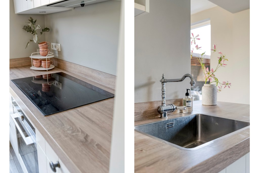 Entree met hal, toilet en trapopgang. Vanuit de hal toegang tot de keuken en woonkamer. Lichte keuken met met oven, koelkast, vaatwasser, inductiekookplaat en afzuiging. Ruime woonkamer met een prettige lichtinval en vrij uitzicht over de uiterwaarden van de Vecht. Aangrenzend bevindt zich een royale garage/berging en sfeervolle overkapping.