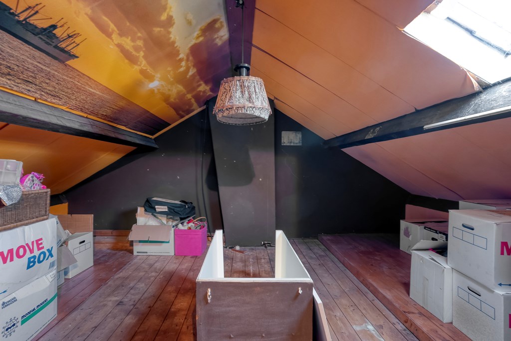 Via vaste trap bereikbare vliering met bergruimte en mogelijkheden voor verdere indeling.