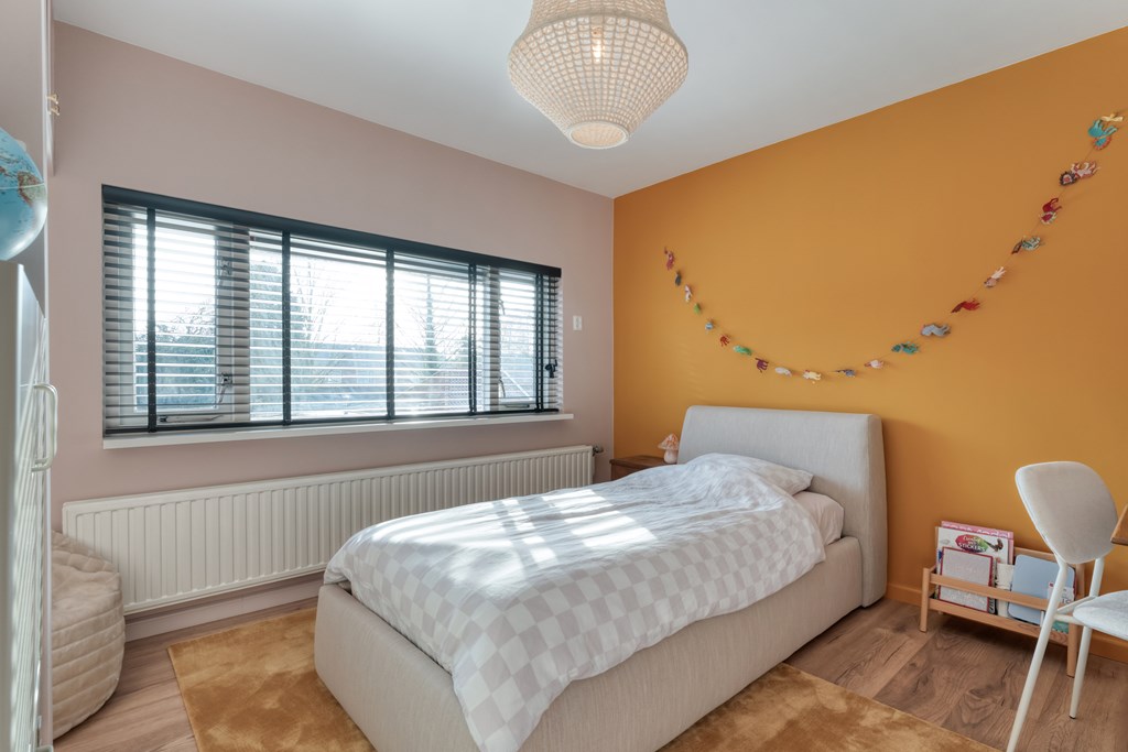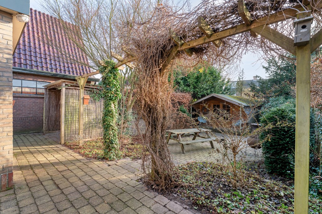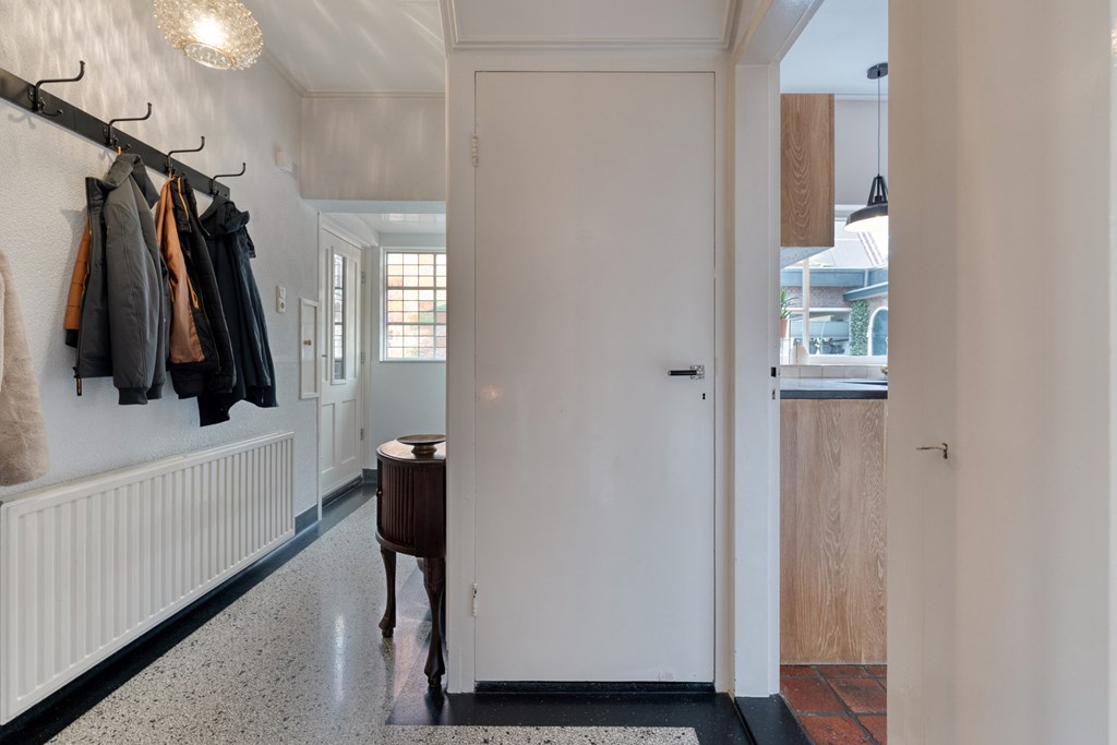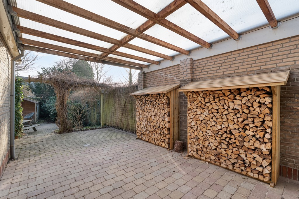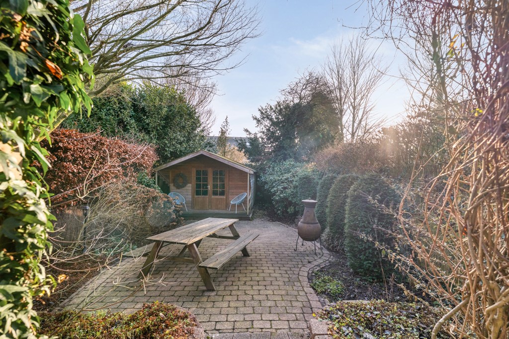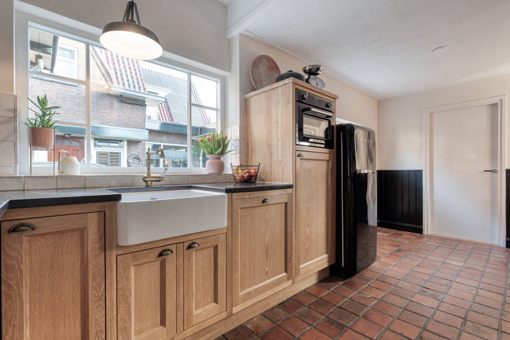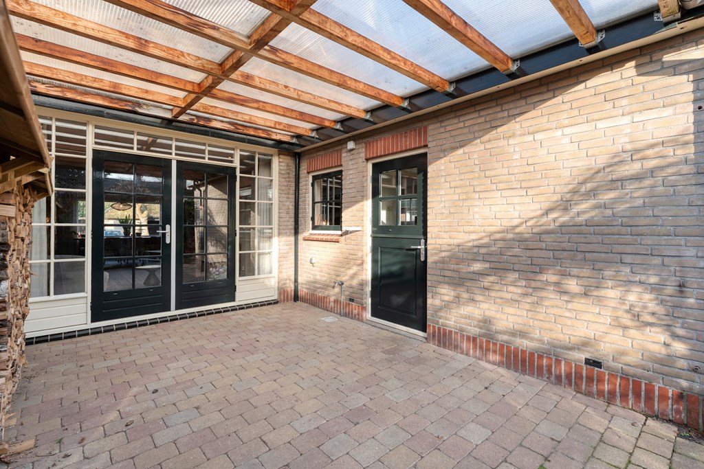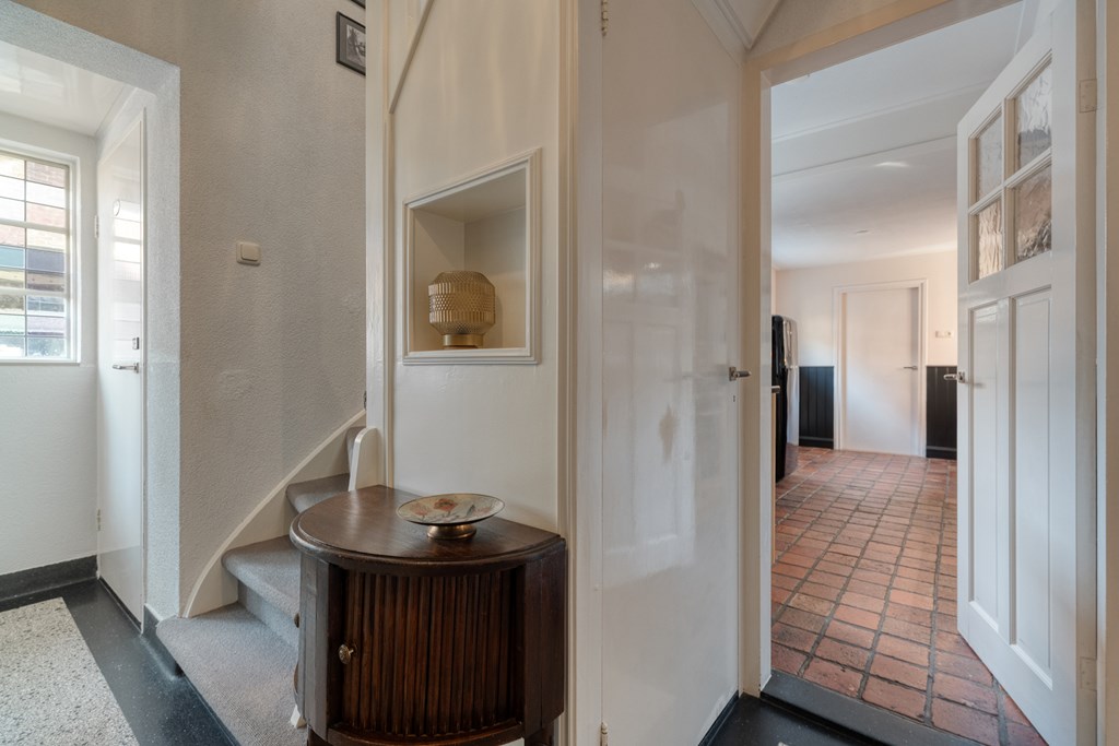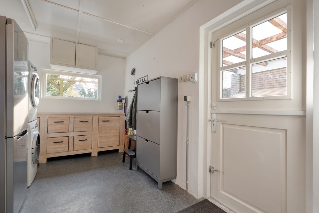 De entree/hal verwelkomt je met karaktervolle glas-in-loodramen en biedt toegang tot het toilet (2019), de meterkast, trapopgang en kelder. Vanuit de hal bereik je de keuken, die is uitgerust met SMEG-apparatuur (2020), waaronder een vaatwasser, gaskookplaat met afzuigkap, combimagnetron, oven en koelkast. De keuken staat in open verbinding met de bijkeuken, voorzien van witgoedaansluitingen en de cv-ketel. Vanuit de bijkeuken loop je zo de overkapping en de zonnige achtertuin in. De ruime en lichte woonkamer en eetkamer vormen samen een heerlijke leefruimte. De woonkamer is sfeervol ingericht met een houtkachel (2023), een massief houten vloer en openslaande deuren naar de achtertuin. Een fijne plek om te ontspannen én te genieten met vrienden en familie.