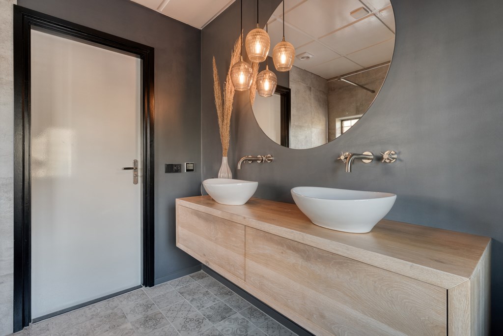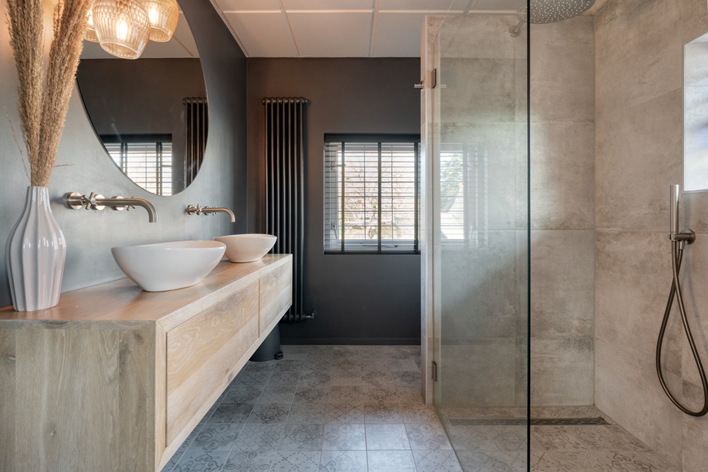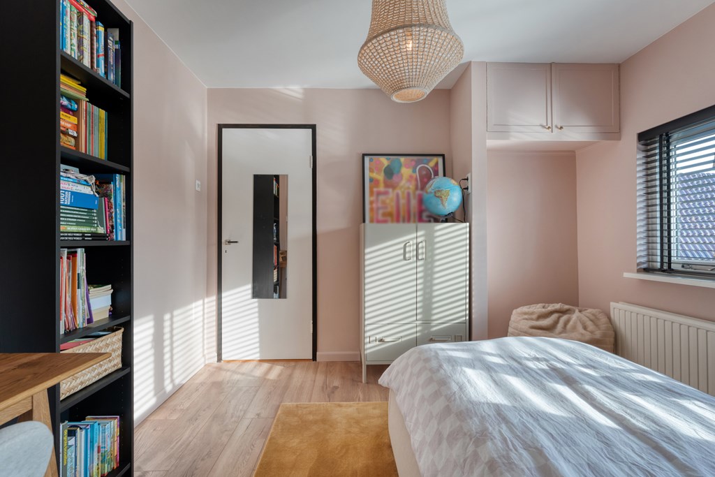Overloop met toegang tot drie leuke slaapkamers. De badkamer (2019) met de vloerverwarming is voorzien van een inloopdouche, wastafel met waskommen en toilet.