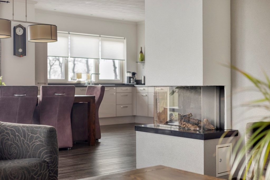 Entree/meterkast/ wandtoilet met fontein/ kantoor cq. bijkamer/ achteringang/ bijkeuken voorzien van wasmachineaansluiting en een extra aanrechtblok met spoelbak/ halfopen keuken voorzien van anderhalf spoelbak, 5-pits inductiekookplaat, vlakschermafzuigkap, combimagnetron, koelkast, vriezer en vaatwasmachine/ woonkamer voor-zien van gashaard, schuifpui naar terras/ slaapkamer met schuifpui en inloopkast/ badkamer voorzien van douchehoek, vaste wastafel, wandtoilet met designradiator.