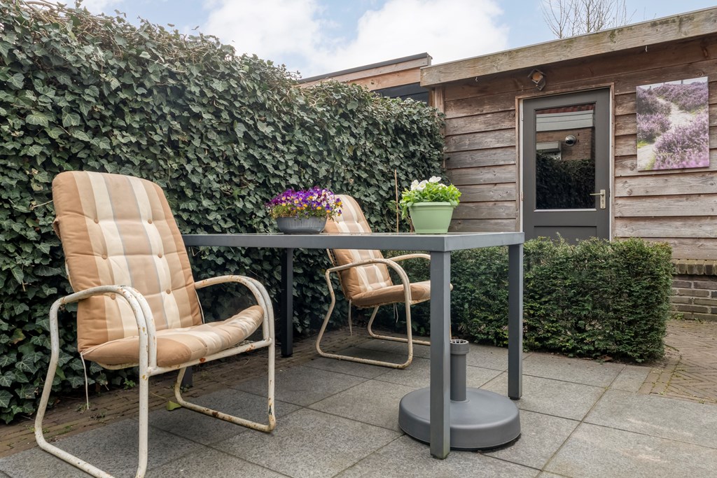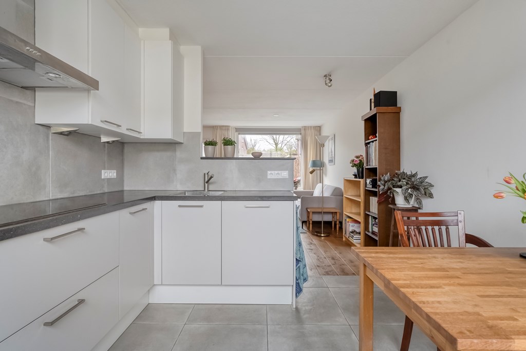 Voor de woning is volop parkeergelegenheid aanwezig. Entree in de hal met toilet en meterkast. De keuken bevindt zich aan de voorzijde en is voorzien van diverse inbouwapparatuur, waaronder een inductiekookplaat, afzuigkap, vaatwasser, koelkast met vriesvak en een oven. Aan de achterzijde vind je de ruime en lichte woonkamer met een warme houten vloer en veel natuurlijk daglicht. Vanuit hier heb je toegang tot de praktische bijkeuken met lichtkoepel, witgoedaansluiting en directe doorgang naar de zonnige tuin op het zuiden.