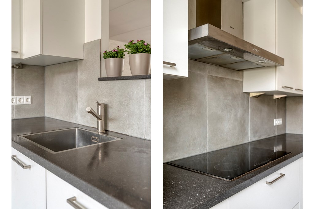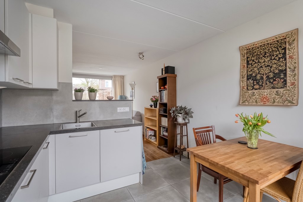Voor de woning is volop parkeergelegenheid aanwezig. Entree in de hal met toilet en meterkast. De keuken bevindt zich aan de voorzijde en is voorzien van diverse inbouwapparatuur, waaronder een inductiekookplaat, afzuigkap, vaatwasser, koelkast met vriesvak en een oven. Aan de achterzijde vind je de ruime en lichte woonkamer met een warme houten vloer en veel natuurlijk daglicht. Vanuit hier heb je toegang tot de praktische bijkeuken met lichtkoepel, witgoedaansluiting en directe doorgang naar de zonnige tuin op het zuiden.