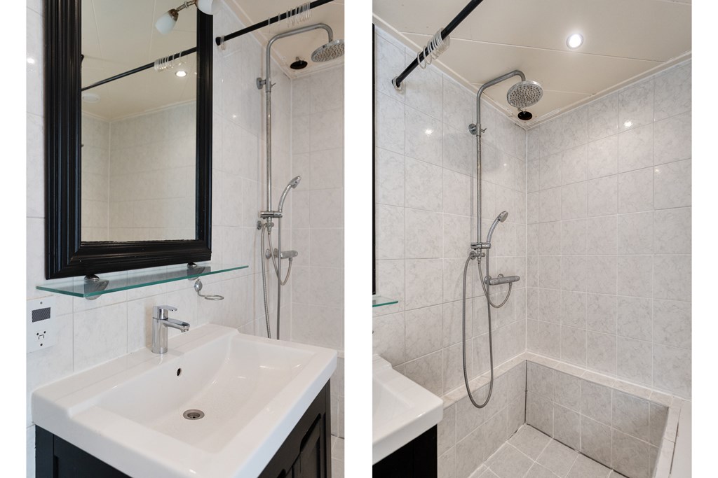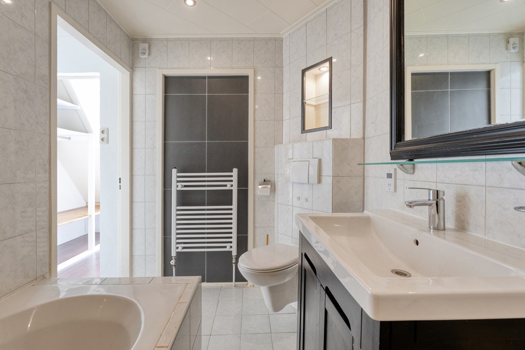 Via een vaste trap in de hal bereik je de overloop, die toegang biedt tot twee ruime slaapkamers. Op de overloop bevindt zich nog een vaste inloopkast. Ideaal om een toilet boven te realiseren.