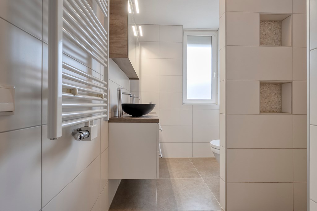 Via de overloop bereik je drie slaapkamers en de moderne badkamer, voorzien van een inloopdouche, dubbele wastafel en toilet.