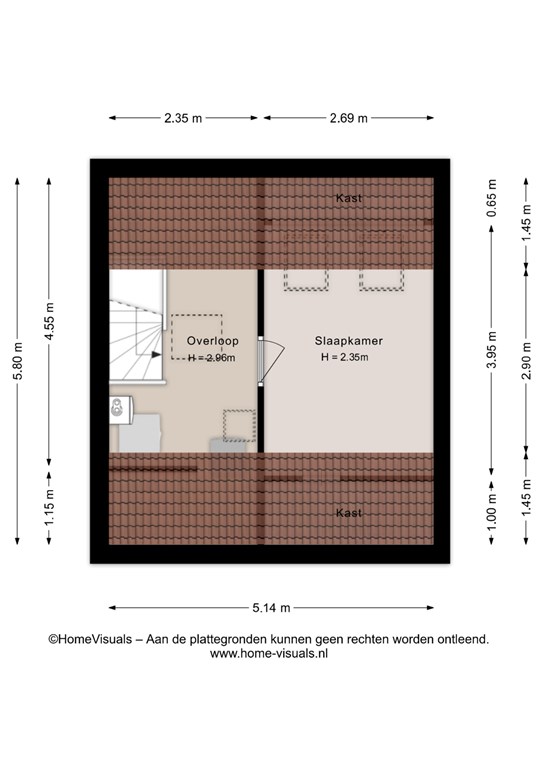 Via een vaste trap bereik je de tweede verdieping. Op de overloop bevindt zich de witgoedaansluiting en is er toegang tot een extra slaap- of werkkamer. Achter de knieschotten is bovendien praktische bergruimte aanwezig.