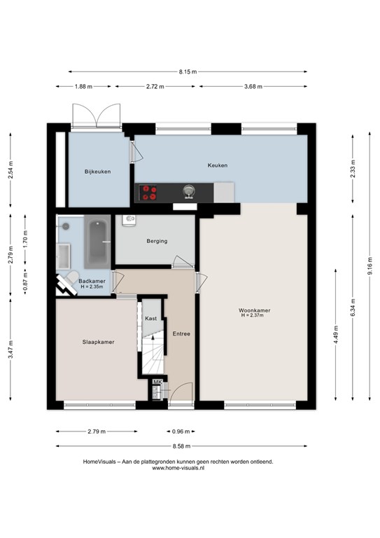 Bij binnenkomst via de entree, waar zich ook de meterkast bevindt, heb je toegang tot de woonkamer, keuken en berging. Op de begane grond bevindt zich de slaapkamer, met aansluitend de badkamer en de bijkeuken met cv-ketel. In de bijkeuken is tevens ruimte voor de wasmachine en droger. De badkamer is voorzien van een inloopdouche, badmeubel, toilet en ligbad. De keuken is uitgerust met een combimagnetron, inductiekookplaat, afzuigkap en vaatwasser. De berging beschikt over een achteruitgang, die uitsluitend bedoeld is voor noodsituaties.