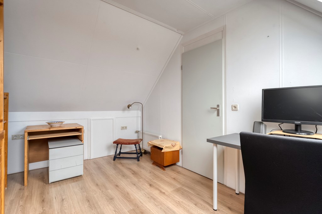 Via een vaste trap bereik je de tweede verdieping. Op de overloop bevindt zich de witgoedaansluiting en is er toegang tot een extra slaap- of werkkamer. Achter de knieschotten is bovendien praktische bergruimte aanwezig.