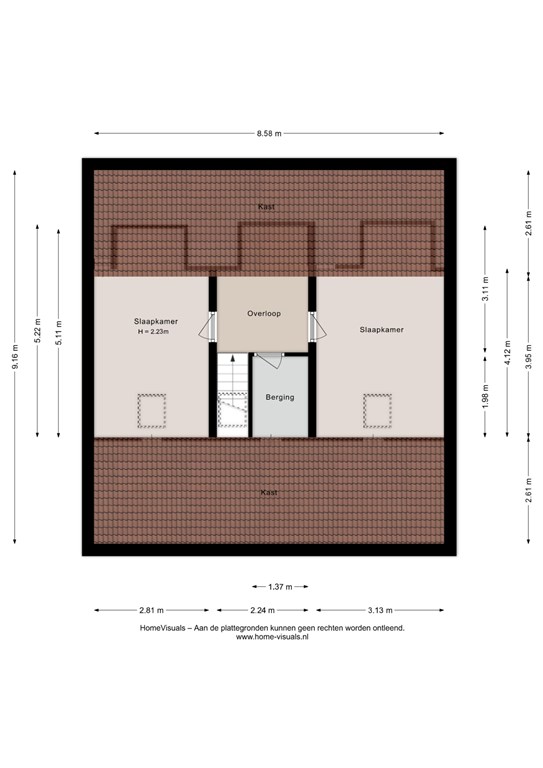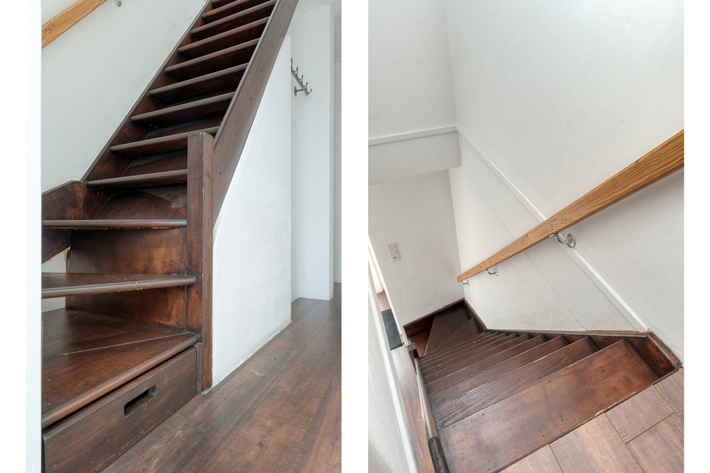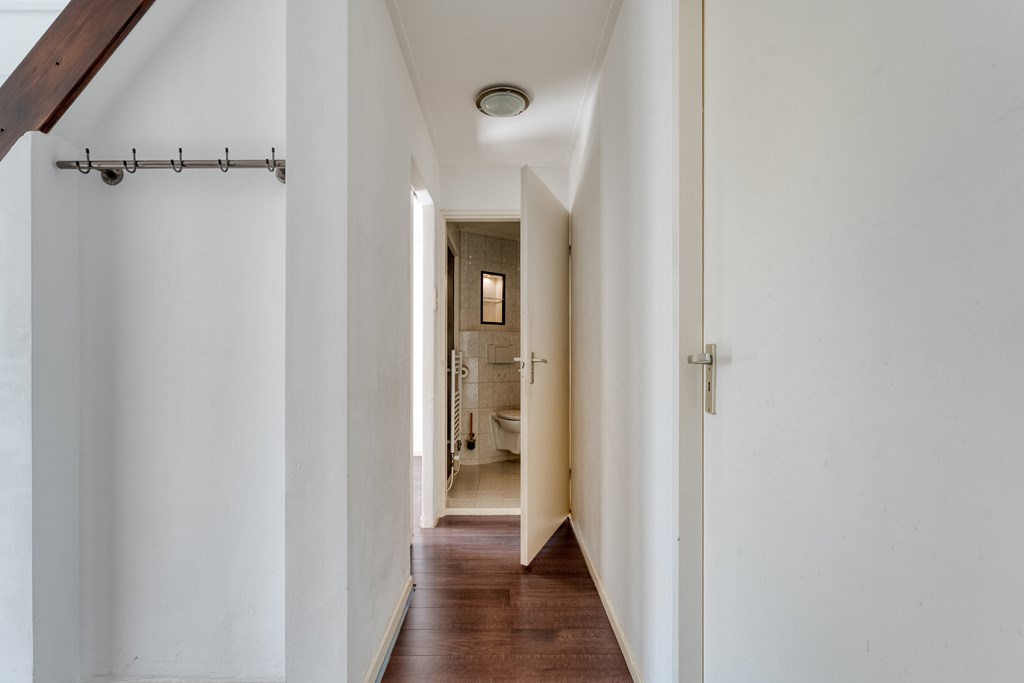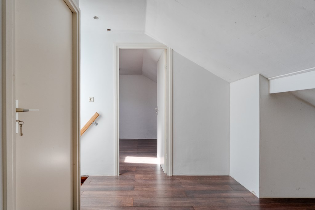 Via een vaste trap in de hal bereik je de overloop, die toegang biedt tot twee ruime slaapkamers. Op de overloop bevindt zich nog een vaste inloopkast. Ideaal om een toilet boven te realiseren.